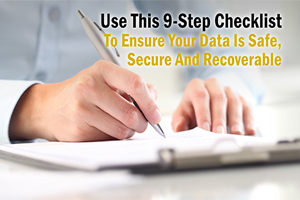 Here’s a quick nine-step checklist we use to ensure that a company’s computer network, and the data for that business, is safe and secure from disruption, if not absolute devastation: